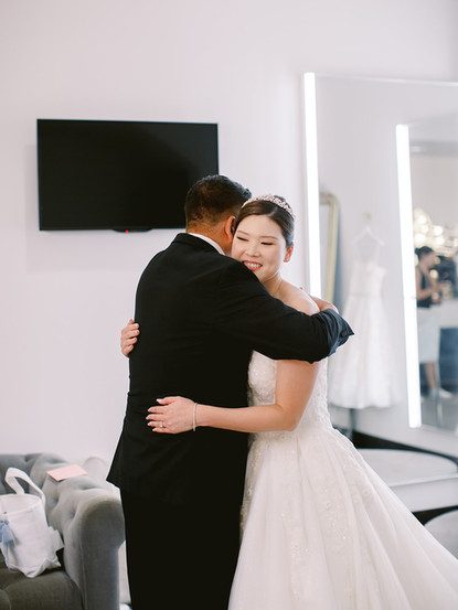 The finishing touches on hair and makeup were being done as Peter and his groomsmen began to arrive ready for the day! Nina got some getting-ready shots with her bridesmaids before stepping into her dress from Wedding Angels! And let us tell you, the sparkle and detail on this dress will have us swooning over it forever! Then we went into a series of first looks! We started with a first look with Nina’s dad, then Peter wanted to do a first look with his mom before Nina & Peter did a first look together! Our couple exchanged personal and private vows before going into some couple photos together.