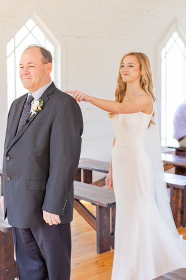 Make Me Up arrived early on Saturday morning to start getting the girls ready for the day. The Flower Garden arrived not too long after to drop of the personal flowers before heading over to decorate the reception area. Gabbie Rhea Photography and ourselves arrived and began making sure everything was running on time. Gabbie started detail photos while Queen Bee Bakes arrived with cake and treats. Grizzle Video arrived and we were off to the races getting robe photos and Sarah into her dress from Aisle & Veil. Side note, Sarah wanted Megan to put her in her dress and it was a very sweet moment for Megan as she felt like a mother of the bride! We did a first look with the girls followed by bridesmaid photos before a first look with dad. Such sweet moments! We did a first touch and gift swap with Caleb before tucking Sarah away and allowing Caleb to do groomsmen photos and photos with his family. We put Caleb and his guys back into their cabin as guests began to arrive and Classic City Entertainment started pre-ceremony music.