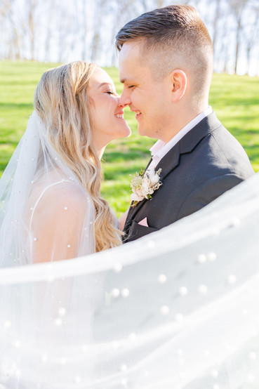 Guests were invited to a cocktail hour in the reception space while Sarah & Caleb did family photos and full bridal party photos before getting photos just of them together. We gave them a second to breathe in the bridal cabin before “Bringing ‘Em Out” was played to introduce the wedding party! The newlyweds were introduced to "Happy" and you could feel the joy in the room! A beautiful first dance followed by a welcome and blessing took place before guests were invited to the buffet set out by Delish Catering!