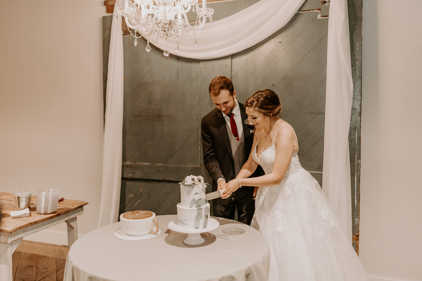 Once everything was complete, we invited guests to find their seats before introducing the bridal party and Sidney & Devin came in to do their first dance. Sidney’s dad came up to give a welcome speech and a blessing before we opened the buffet line for some great BBQ from White Tiger! After everyone ate, Sidney & Devin cut the wedding cake and adorable groom's cake from The Posh Cakery. Next, we got to hear speeches from Sidney & Devin’s Maid of Honor and Best Man. We even got a bonus toast from Sidney’s Dad before finishing the formal dances and kicking off the dance floor!