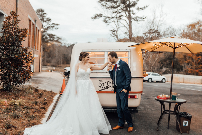 After the ceremony, Sidney & Devin got photos together while guests enjoyed coffee and hot chocolate from the Coffee Camper Co. Sindey and Devin really wanted to take time alone so after photos they snuck upstairs for a private moment to have their first cup of coffee together while we helped Jeff and his team flip the ceremony room into the reception area! We love watching a room transform from ceremony to reception - it’s so satisfying!