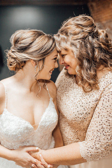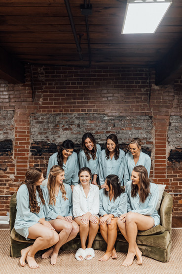On wedding day, we arrived at The Factory at Walton Mill ready for a great day! Make Me Up was all set up in the bridal suite and the girls were taking turns getting their hair & makeup done while others were watching the UGA game in the Groom’s suite since the boys weren’t there yet. Meanwhile, we were in the ceremony and cocktail hour spaces setting up the decor that Sidney & Devin brought in during the rehearsal. Jeff had the chairs all in place and since we were doing a flip, there wasn’t a lot to do just yet! After we went to grab lunch for the girls from Blue Rooster, the videographer, A&E Videography & Photographer, Loveleigh Co arrived to begin detail shots before Sidney stepped into her dress. Sidney did a first look with her bridesmaids before they went outside to get photos together. Sidney & Devin decided not to do a first look but instead do a first touch, exchange gifts, and pray before the ceremony.